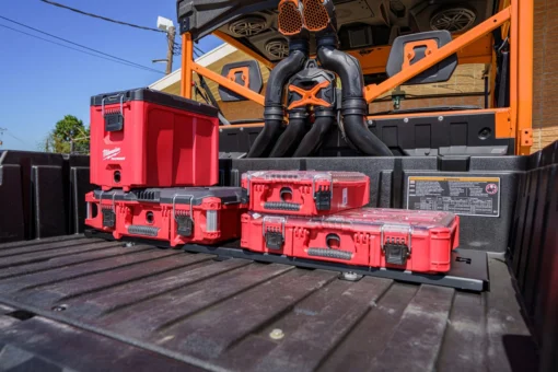 The S3 Power Sports Can Am Defender Milwaukee PACKOUT Bed Mount is designed to make your off-road adventures easier. This sturdy mount seamlessly fits your Milwaukee PACKOUT system in your vehicle bed, keeping your tools organized and secure wherever you go.