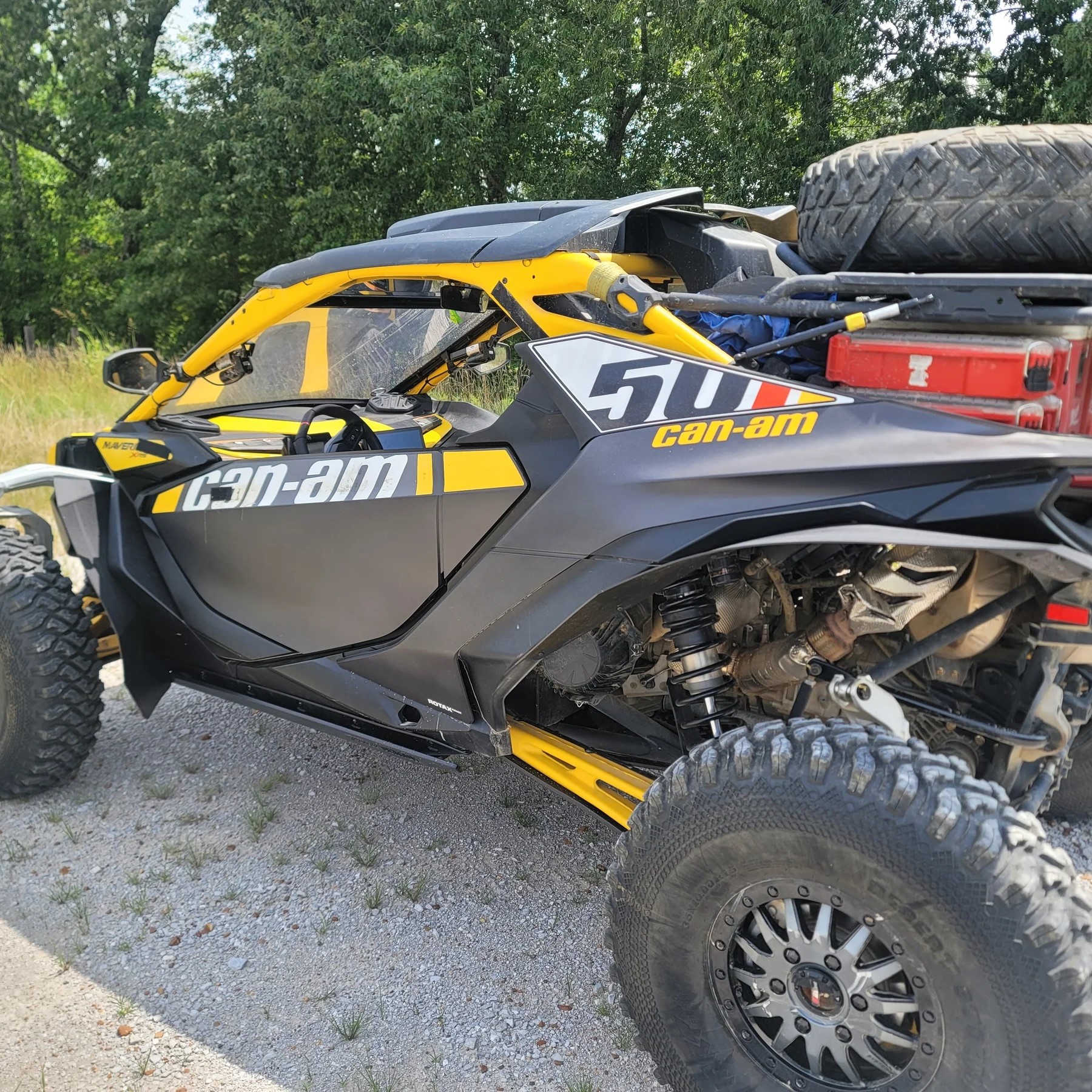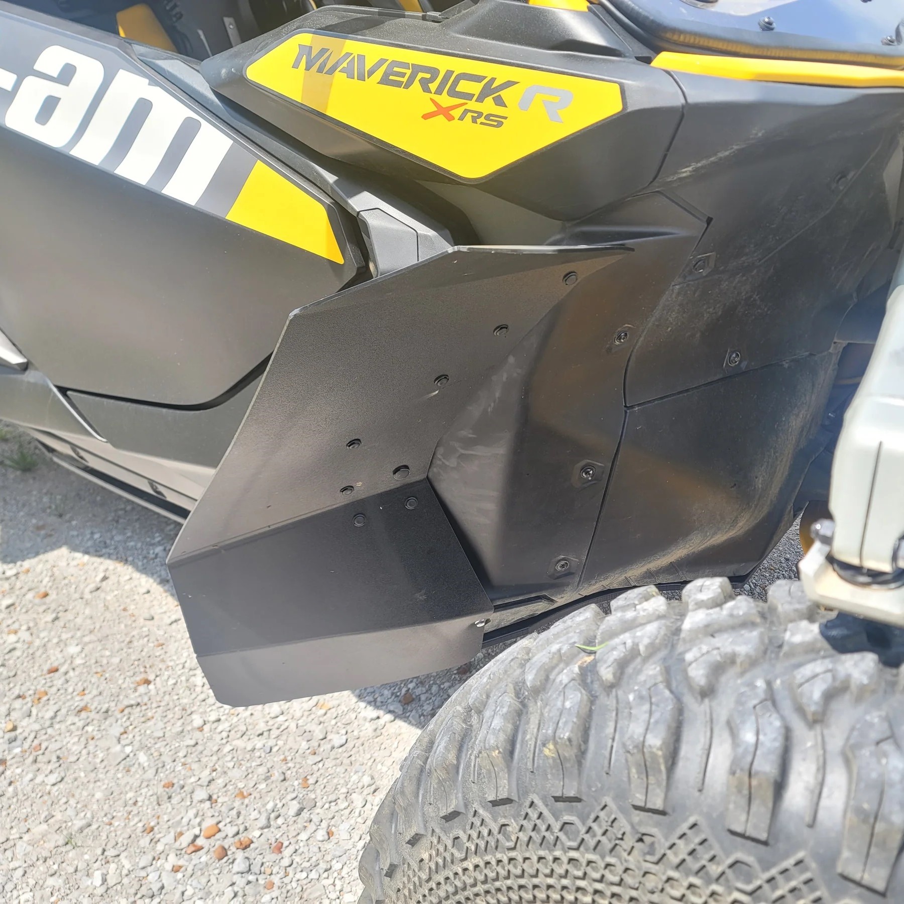 Made of HDPE plastic (textured on face side) custom cut to work with the front and rear can am maverick r fenders.