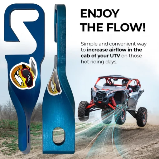Keep Smiling’s Easy-Cool UTV Maverick Vented Door Latches, X3 Vented Door Latches are a cost-effective, simple and convenient way to increase airflow in the cab of your UTV on those hot riding days.