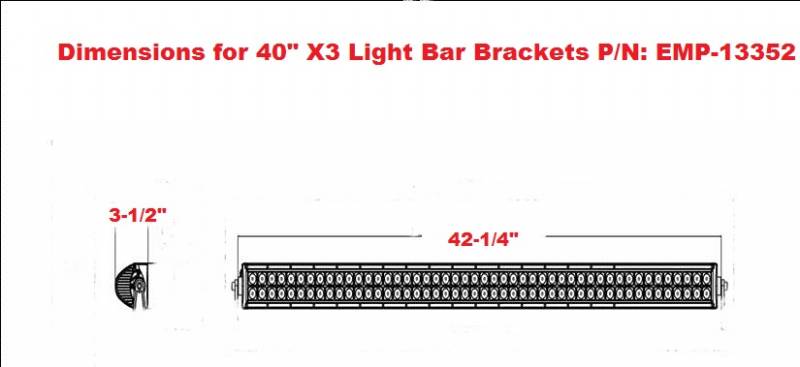 LED light bars have outside dimensions that vary from the listed size of the light bar. For Example: 40” light bar should have an outside dimension of 42-1/4” Outside dimension.