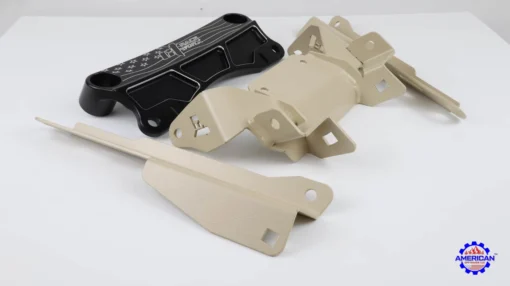 The sheet metal lower brace bolts to the billet aluminum upper piece via (2) 1/2″ grade 8 bolts.