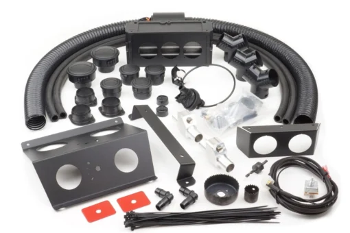 Kits also include custom CNC laser cut mounting brackets, heater hoses and duct hoses, hose clamps, new and improved vents, hole saws (for the heater hoses and vents), grommets, Switch, wiring loom and terminals included, templates, your specific mounting bracket with hardware, and instructions.