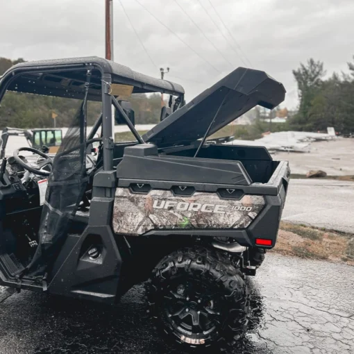 Helping Keep Your Gear And Storage Area Dry And Clear Of Mud And Dirt With This CFMoto UForce 1000 Bed Cover, Fully Molded Coverage With Stuts For Easy Opening