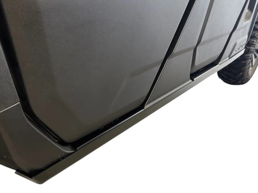 Custom Metal Laser Cut And Powder Coated Black CFMoto UForce U10 Rock Sliders. Full Corner Cab Protection While Hitting The Hardest Trails