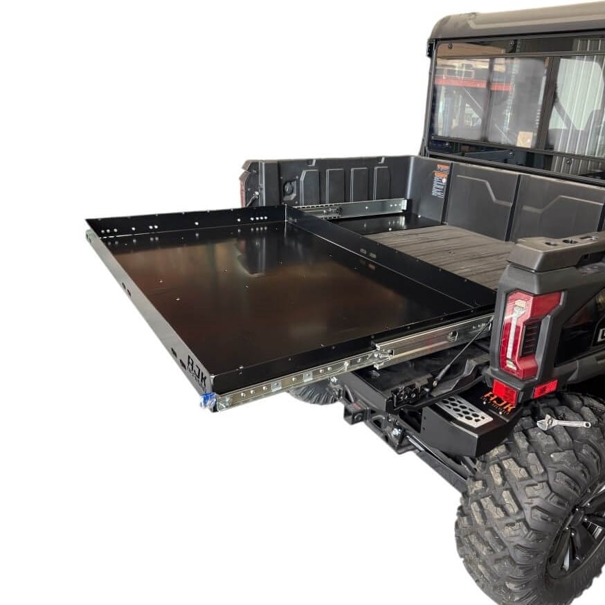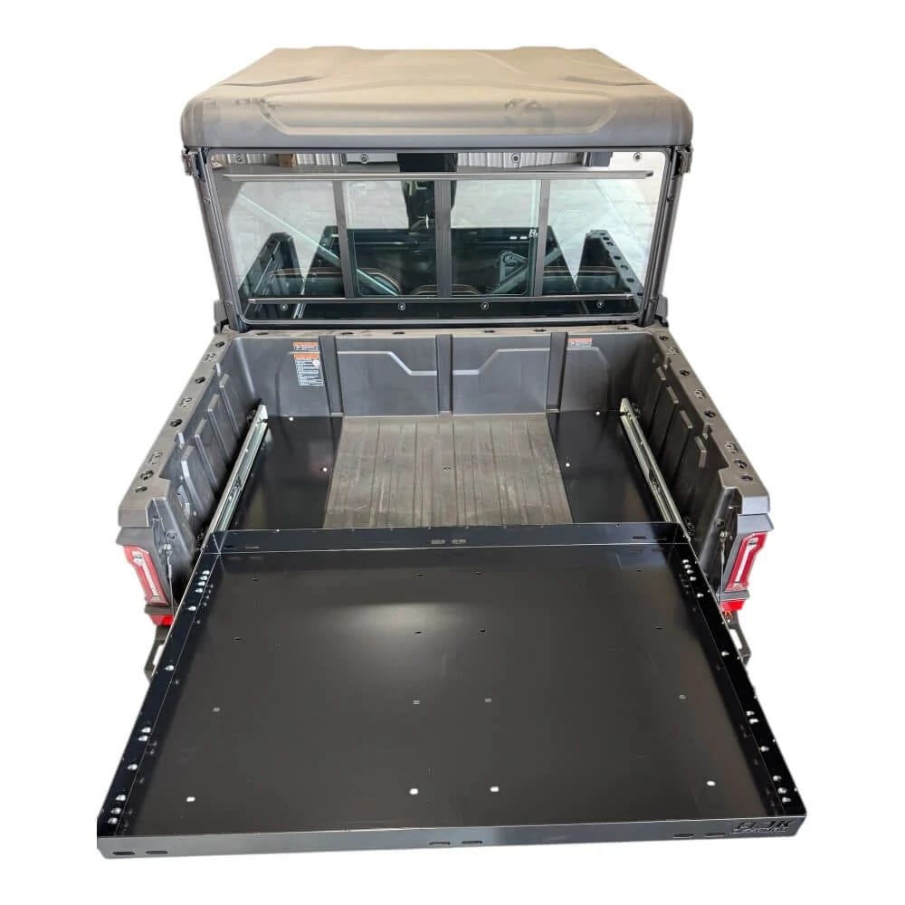 Engineered for strength and durability, our bed drawer is securely bolted to your machine using existing mounting points. It features heavy-duty drawer slides rated for 500 lbs per set, with a locking mechanism in both the open and closed positions for stability.