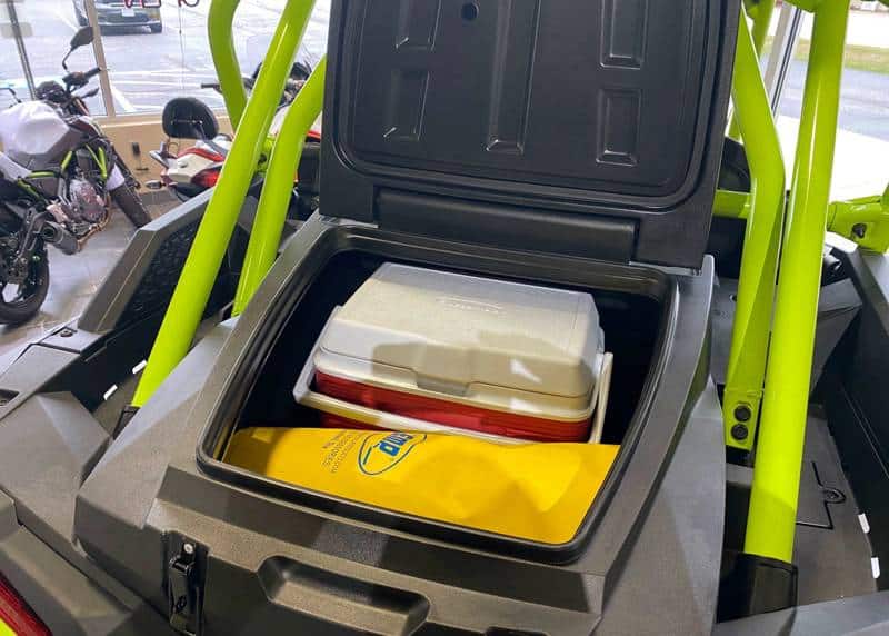 Thesse Large 42 Gallon RZR Rear Cargo Box, Takes Your RZR Storage To Another Level. Water Tight Direct Fitment To Turn Your Rear Box Into Full Storage