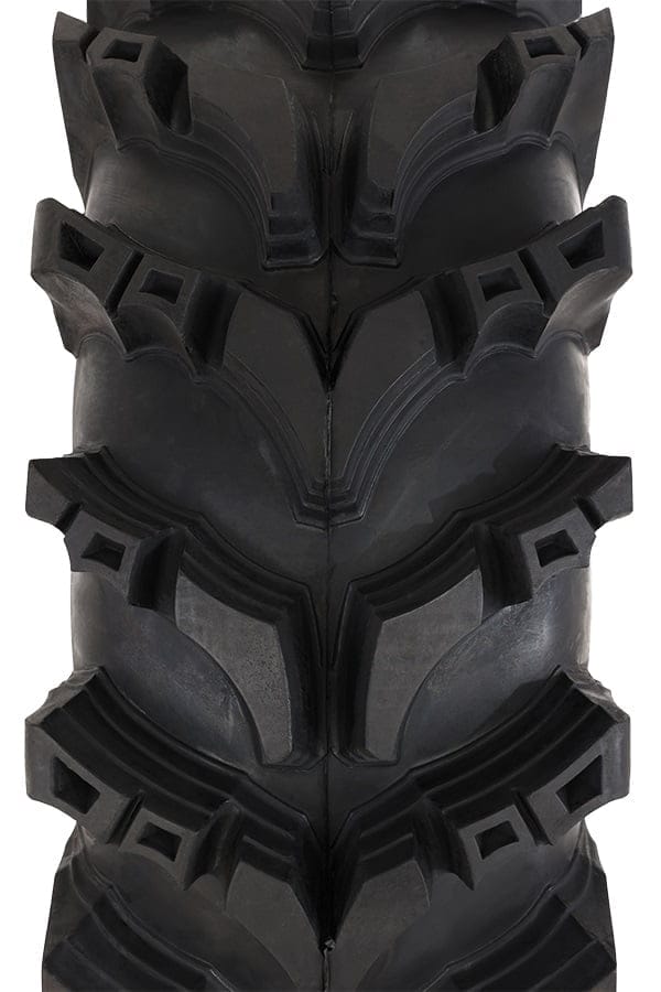 - Aggressive V lug tread digs deep while offering smooth ride on hard pack surfaces