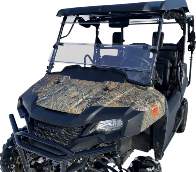 This Honda Pioneer 700 Folding Windshield Provides Full Protection With The Option To Fold Down The Middle For Better Air Flow And/Or Visibility.