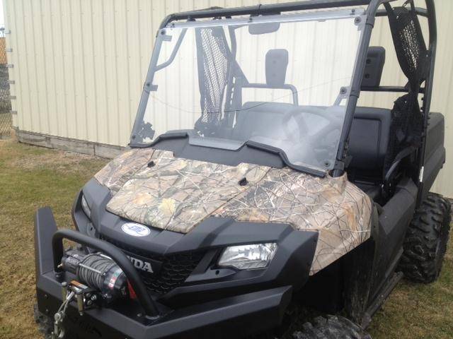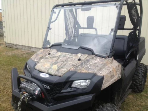 A Honda Pioneer 700 Full Windshield, Made From 1/4″ Thick Hard Coated, Scratch Resistance Lexan Poly Carbonate. Easy Straps For Quick Installation And Removal