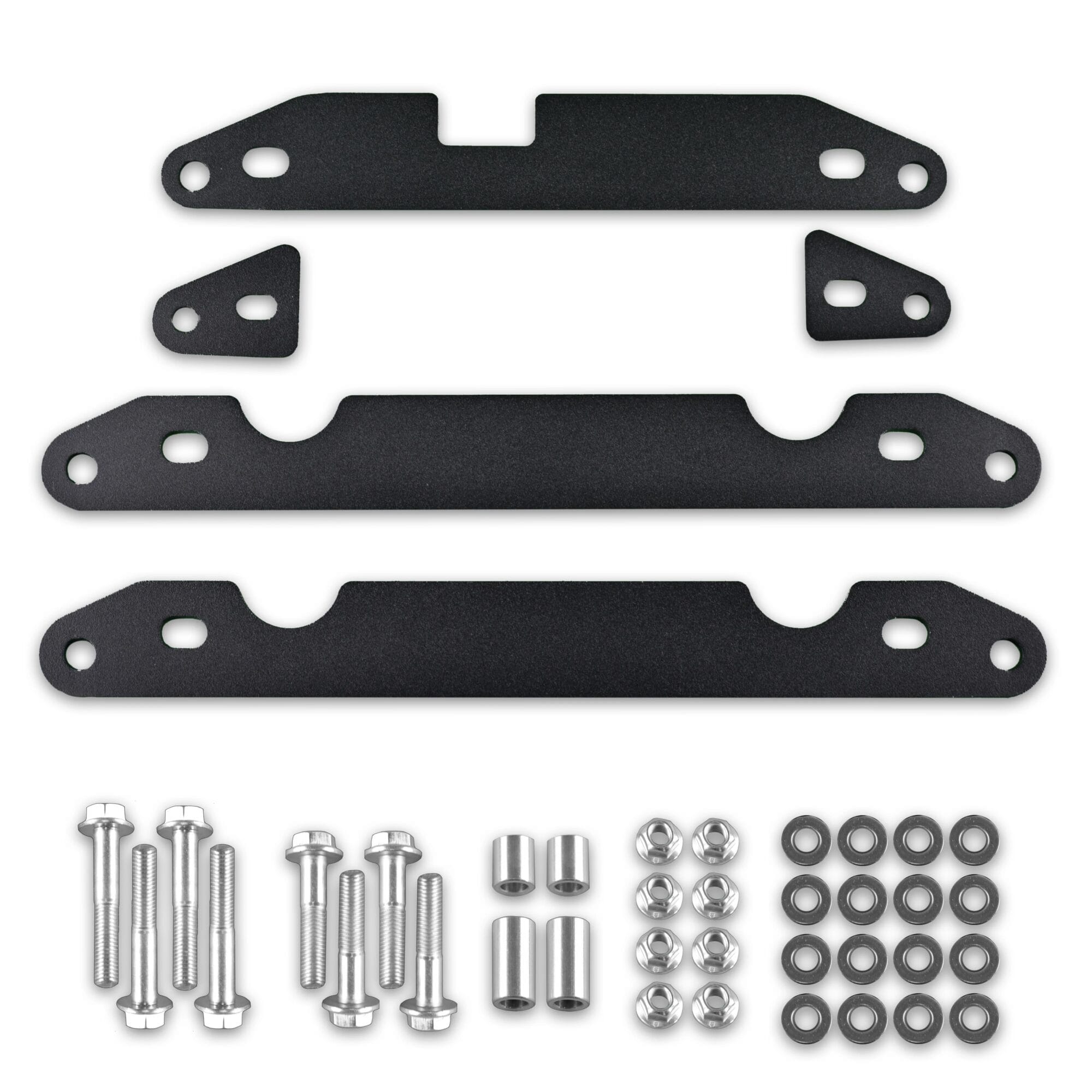 Durable Construction: Made from robust 3/16″ steel and powder-coated with a textured black finish, this lift kit is built to withstand the harshest conditions and provide lasting durability.