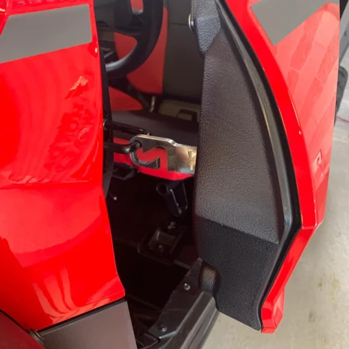 The Easy-Cool Door Latch allows doors to remain solidly open during the ride experience. Just add between the stock door latch post and enjoy the flow!