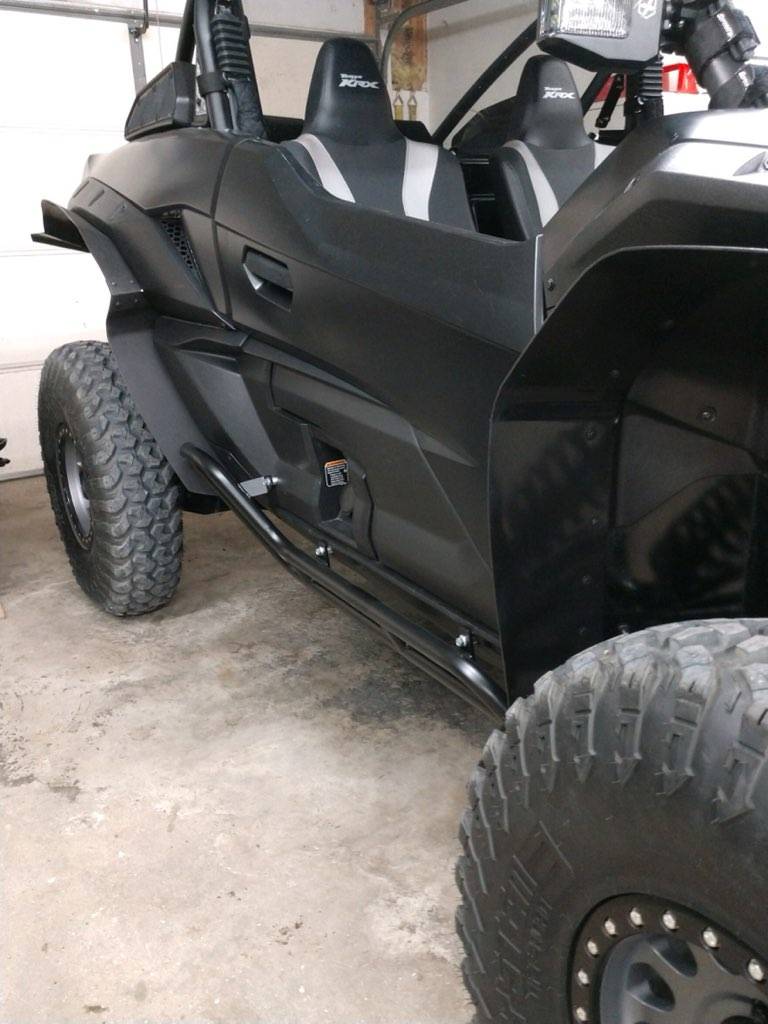 Add Side Protection To Your Cab and Rear Tires with These Made In USA, Solid Steel Kawasaki KRX 1000 Nerf Bars, Tree Kickers. Powder Color Options, Easy Install