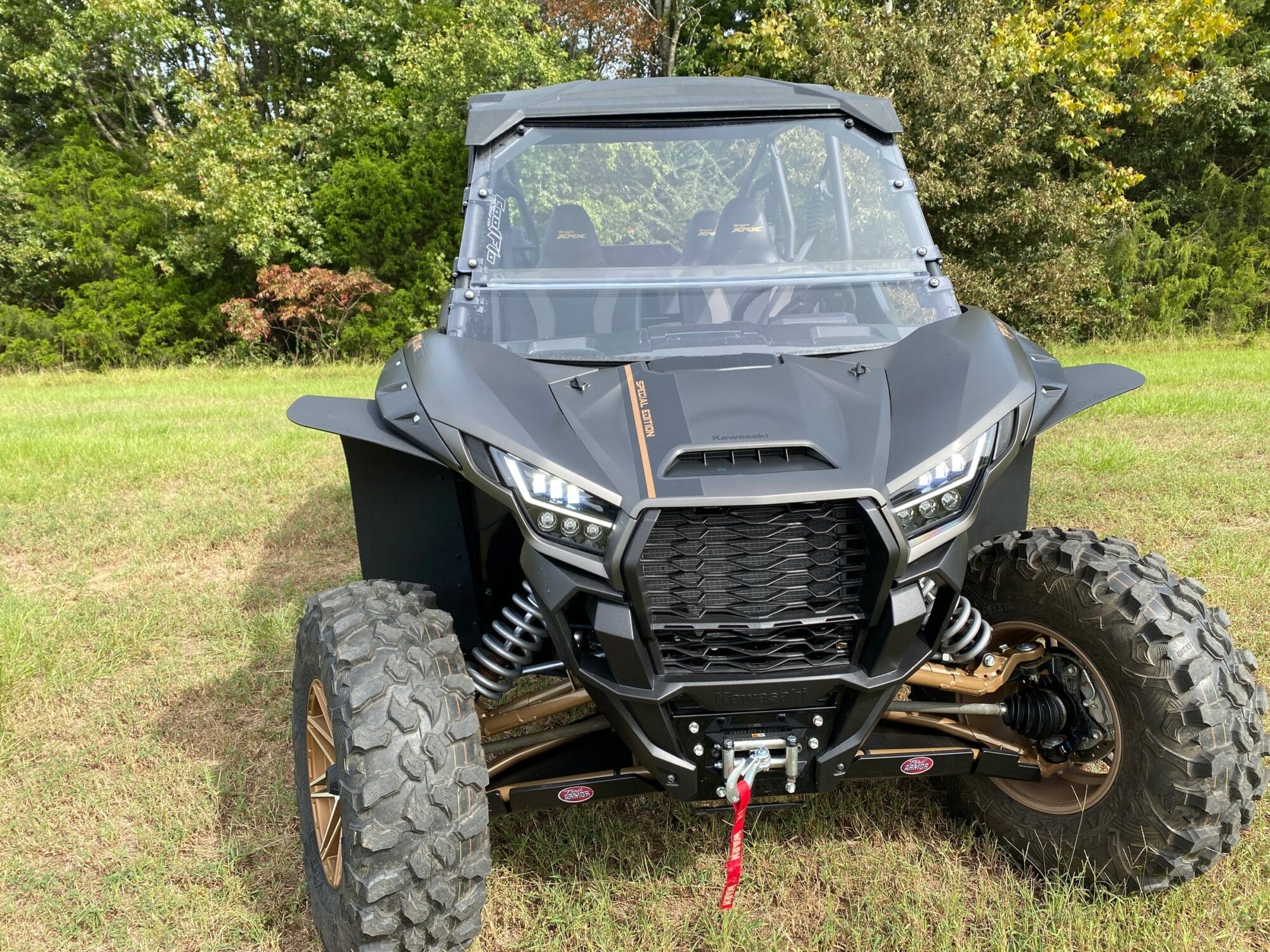 Trail Armor brings you the Kawasaki KRX Front Windshield for your UTV That Keeps the Bugs & Mud Out of your Face While Balancing Air in your Cab.
