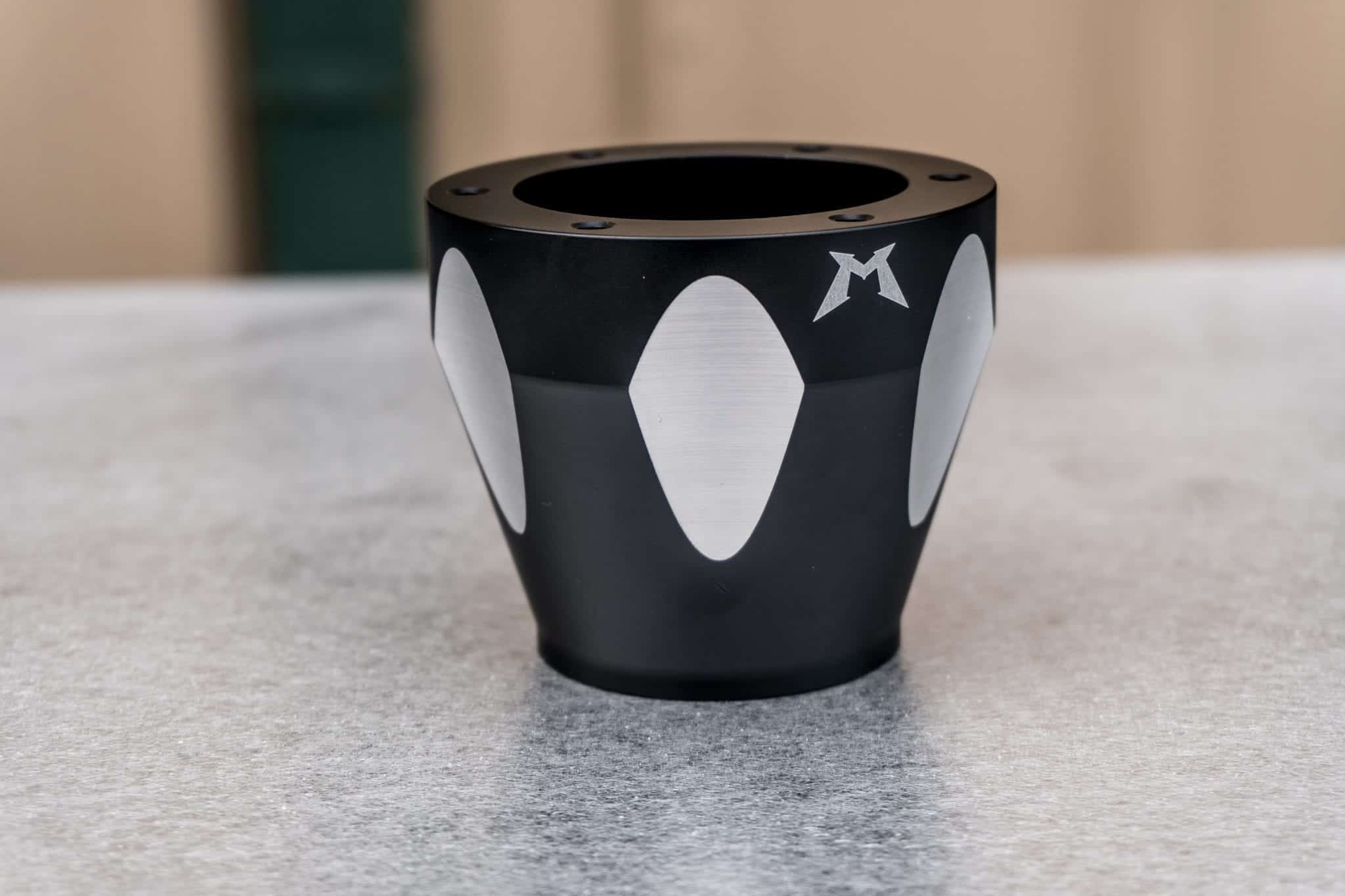 Our Machined Solid T-6 Aircraft Aluminum Steering Wheel Hub features a anodized black and cross cut with iconic 3 ball mill grooves.