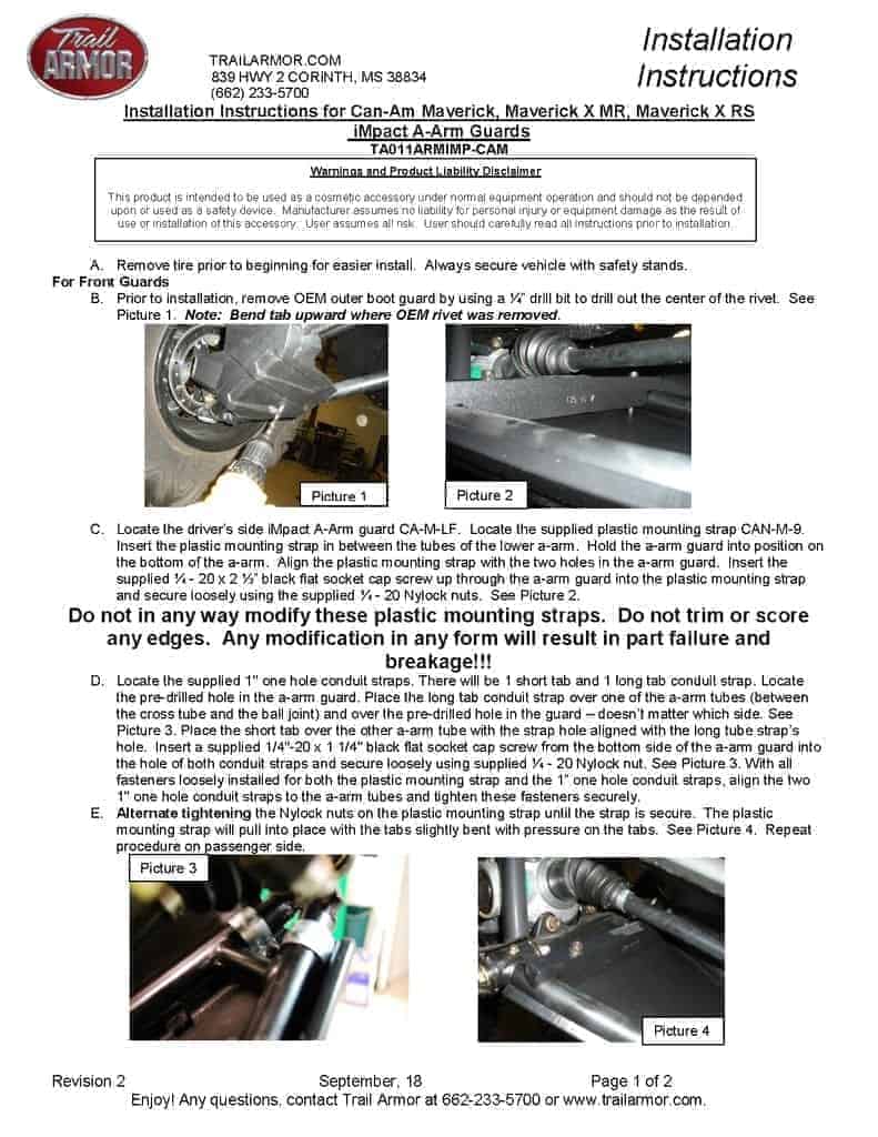 Trail Armor A Arm Guards for Can-Am Maverick Models