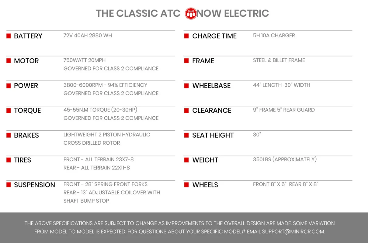 Electric has never been this cool. The all new patented long range electric three wheeler is a first of its kind. This design is a call back to the original ATC, but faster, sleeker and wilder than ever. Plus Ride It Locally Any Time