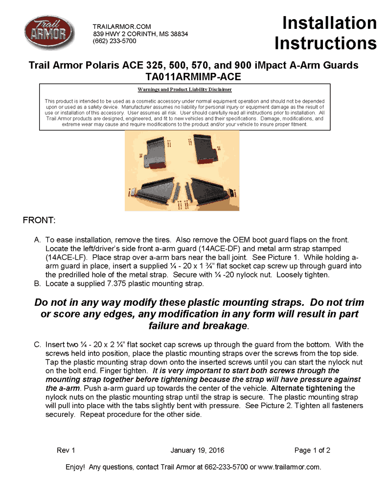Break bad on the trail, ride the most buggy-busting terrain you can find – Trail Armor’s new ultra high density plastic Polaris Ace a arm guards can take the iMPACT!