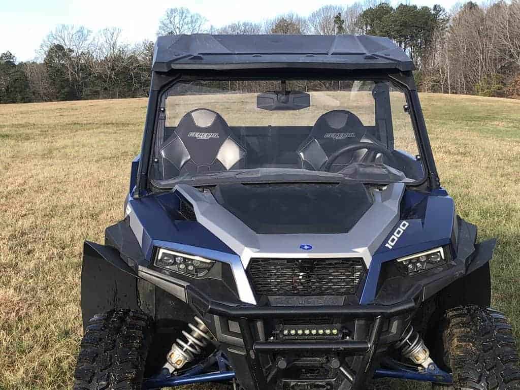 Trail Armor brings you the Polaris General Front Windshield That Keeps the Bugs & Mud Out of your Face While Balancing Air in your Cab.