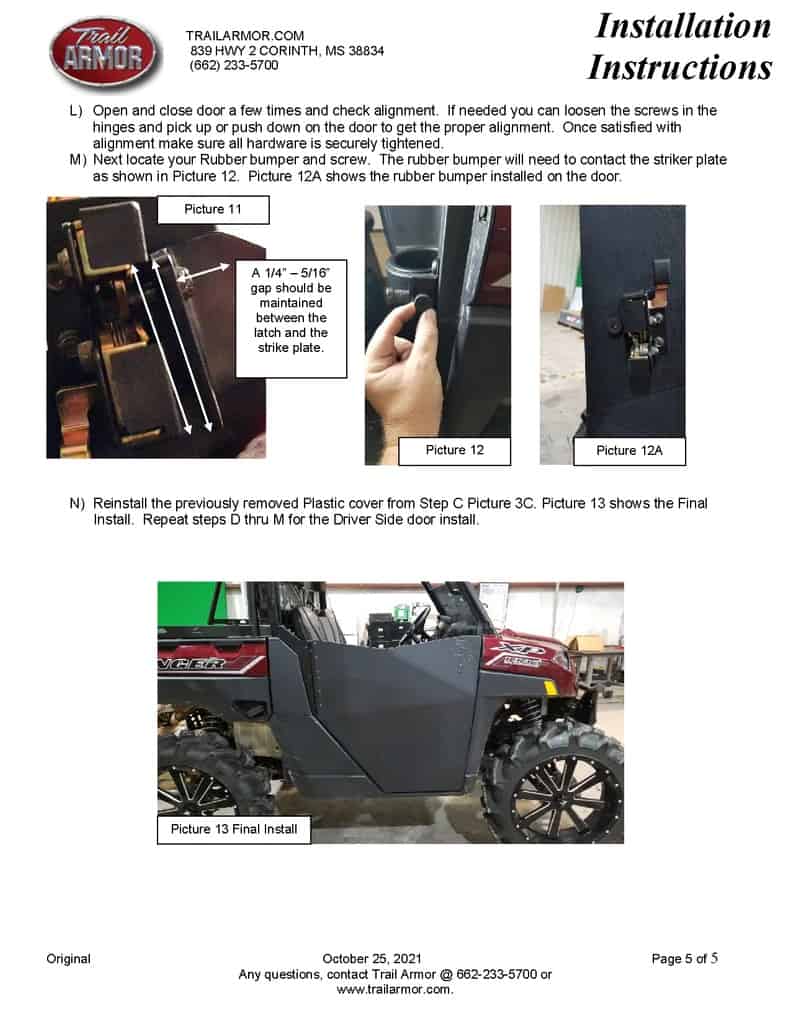 Looking To Add 5/8″ Solid UHMW Protection, These Ranger 1000 Doors Give You That. Tight Seals, New Hardware and The Performance to Protect You. USA Made