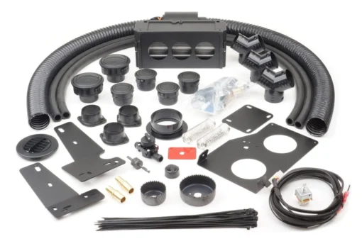 Kits also include custom CNC laser cut mounting brackets, heater hoses and duct hoses, hose clamps, new and improved vents, hole saws (for the heater hoses and vents), grommets, Switch, wiring loom and terminals included, templates, your specific mounting bracket with hardware, and instructions.