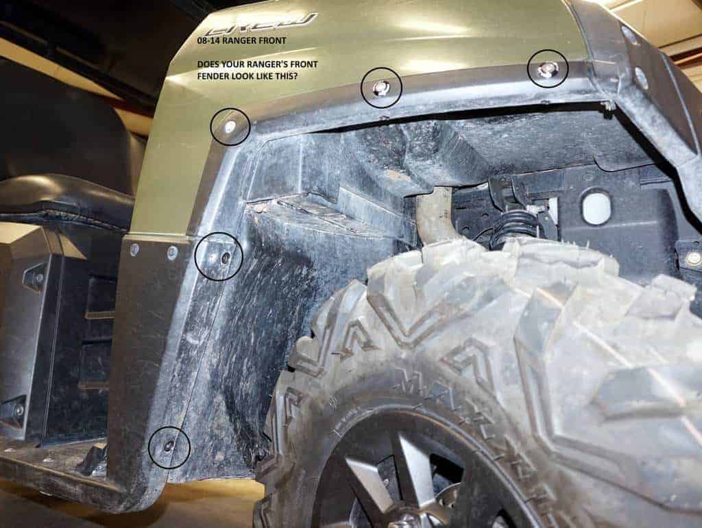 - Excellent protection from wheel spray off the wheels/tires without taking away from the utility or functionality of your Polaris RANGER.