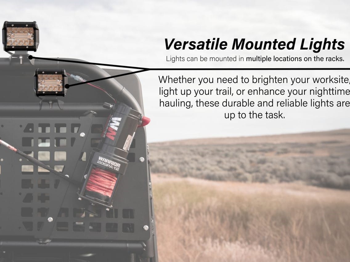 This Ranger XD 1500 headache rack isn’t just about performance; it’s also about durability and convenience. Constructed from CNC-cut 1.5” steel tubing and coated with our signature Tuff Coat finish, it’s built to withstand years of abuse. The integrated design includes two powerful 60W, IP67-rated LED lights and a wireless winch controller for total visibility and effortless operation.