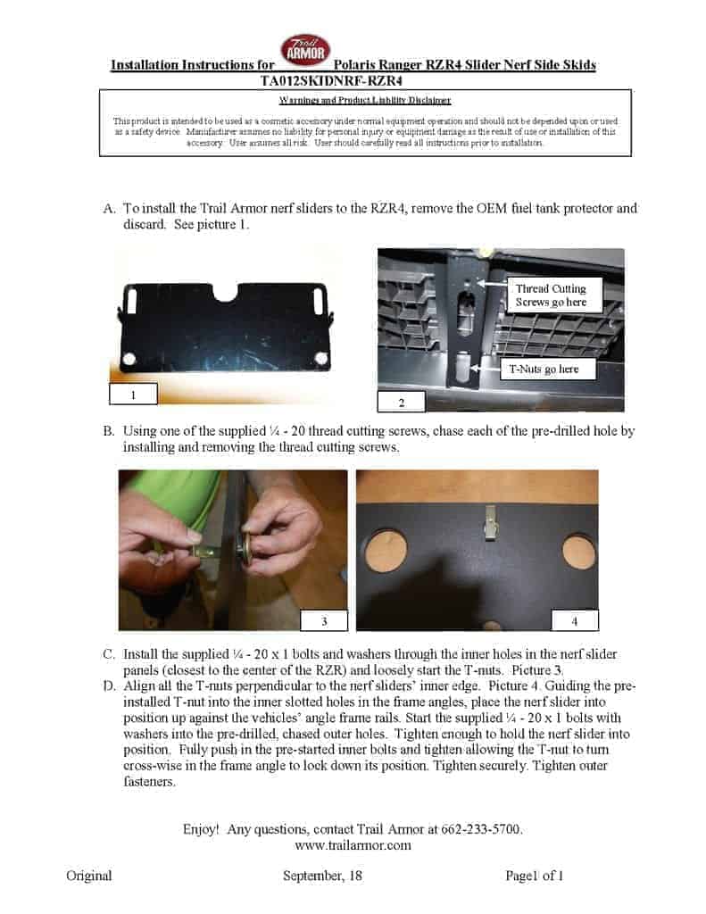Trail Armor’s nerf sliders for the 2008 – 2014 Polaris RZR 4 800 skid plates are made of high density 1/2″ uhmw polymer.