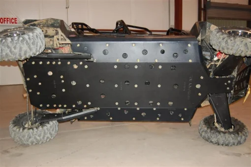 Trail Armor’s full skid plate set for the Polaris RZR4 XP 900 is now even better with additional rear coverage to protect your rear cv boots and a-arms (not the trailing arms).