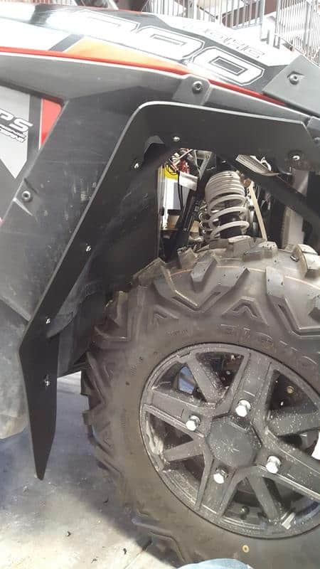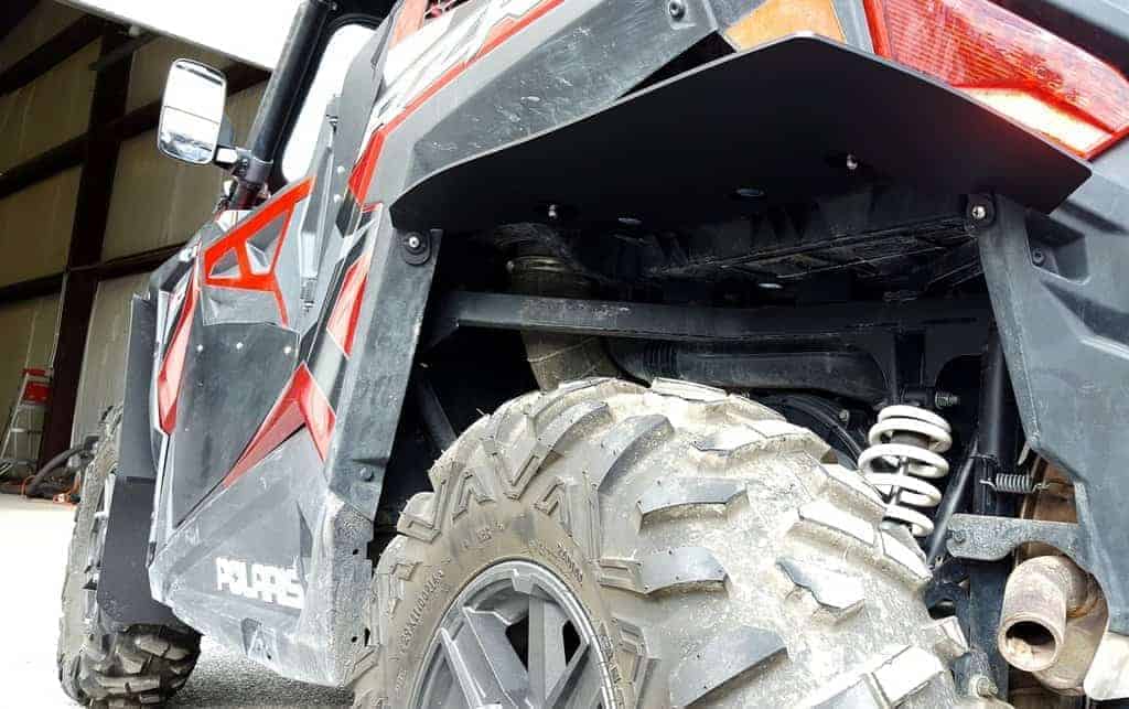 - Excellent protection from wheel spray off the front and rear wheels without making your RZR 900 TRAIL too wide.