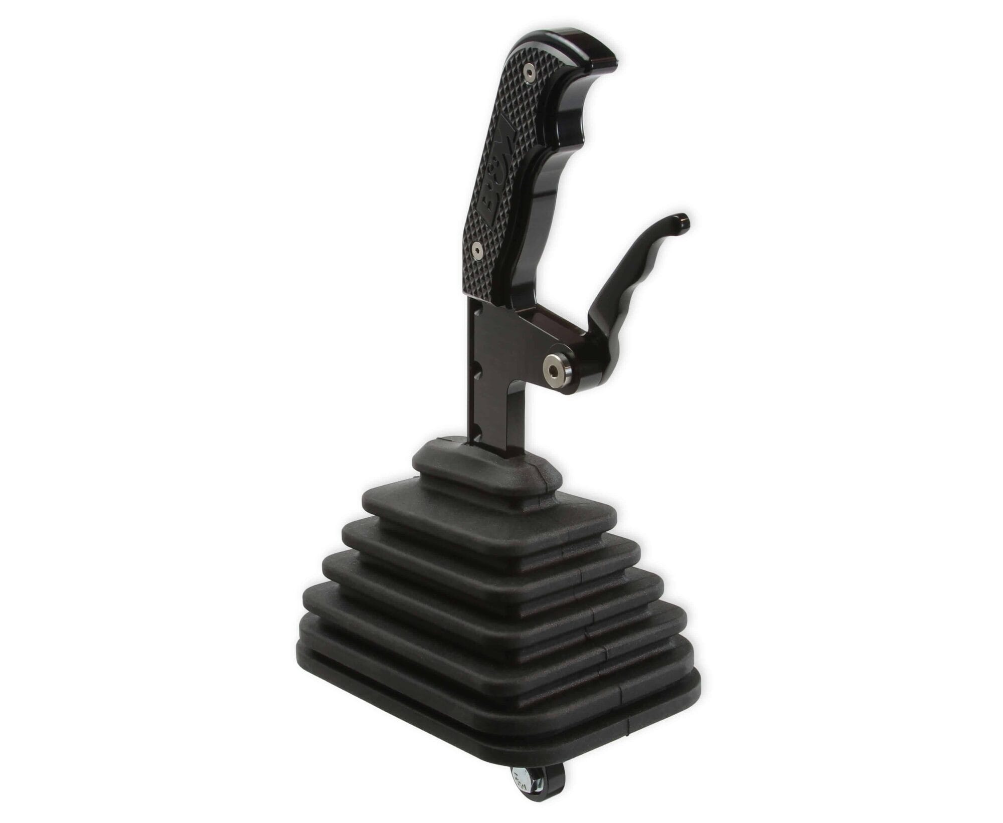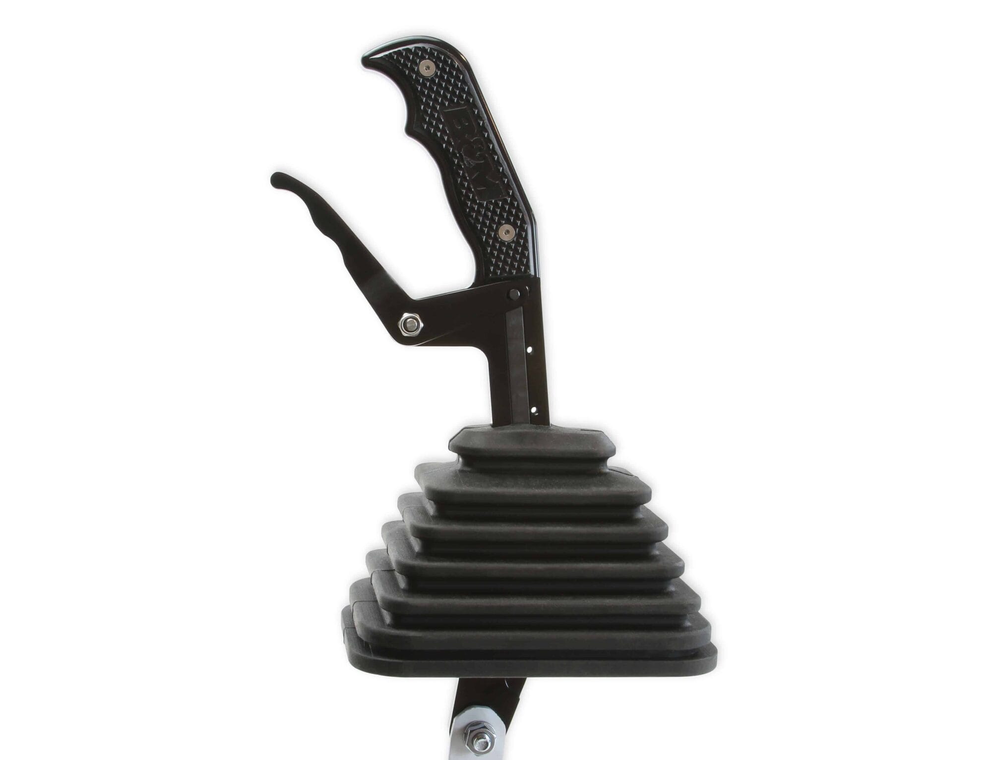 The Magnum Grip dual gate shifter and grab handle feature CNC billet aluminum construction, an ergonomic design for a modern aggressive look, replaceable midnight black polycarbonate side grip plates and spring loaded stainless steel trigger for positive locking and unlocking in and out of gears.