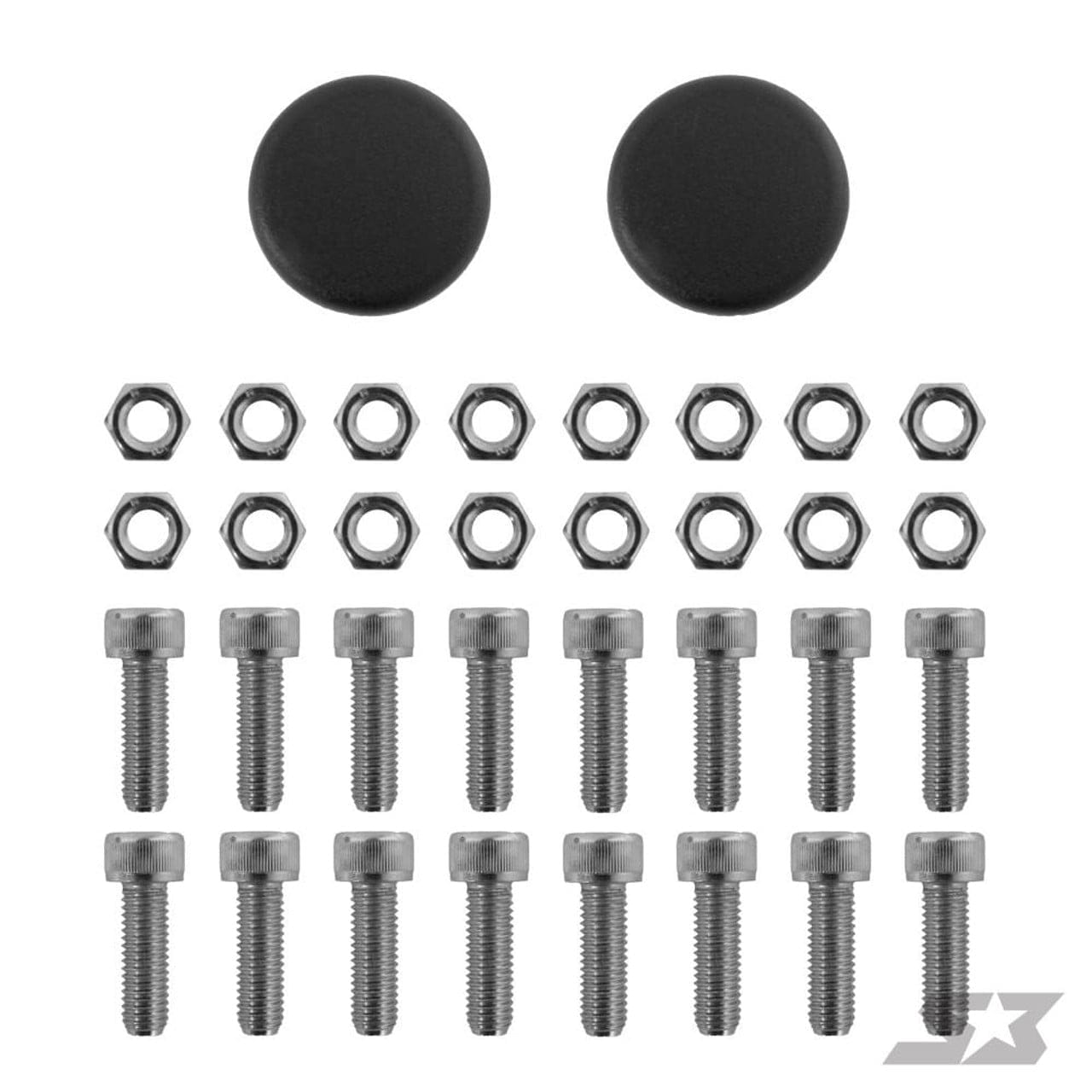 (1) Driver Nerf Bar, (1) Passenger Nerf Bar, (2) Front Post, (2) Center Post, (4) Rear Post, (8) Mount Insert, (2) Finishing Plug, (1) Bolt Kit