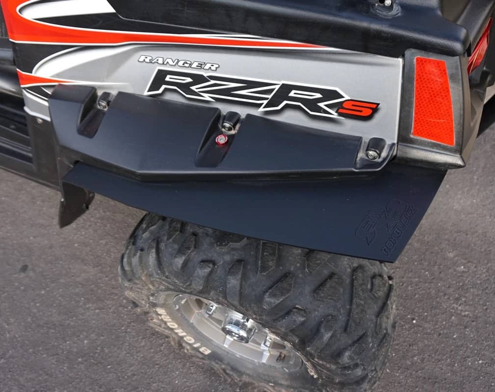 - Large mud flap design provides your RZR 800 S with excellent protection from wheel spray off the front and rear wheels, where the majority of mud, sand, and rocks entering the cabin comes from.