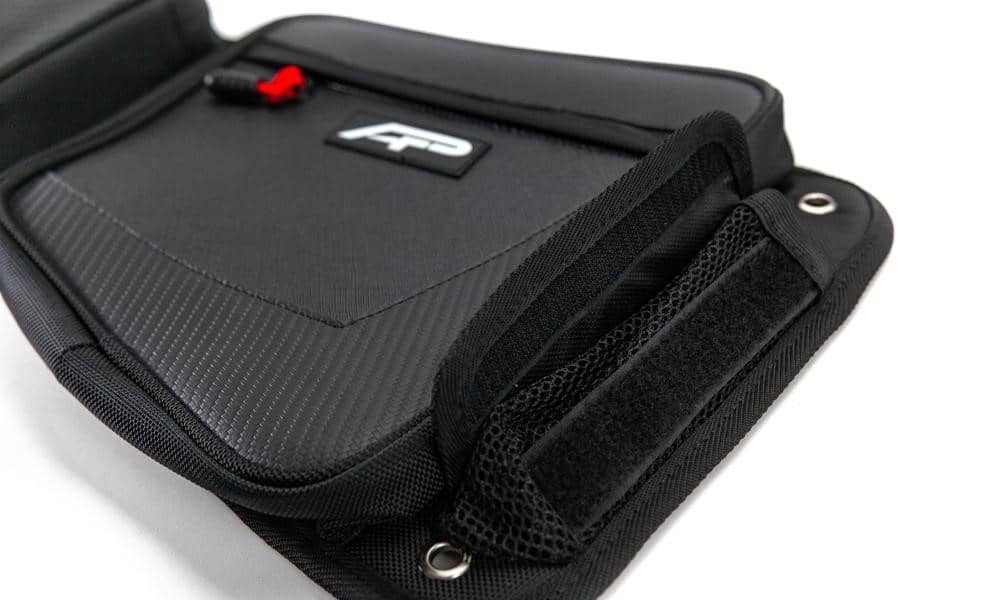 This storage bag can be used to secure your keys, wallet, phone, water, snacks for the ride, and other miscellaneous belongings that can’t fit in the glove box.