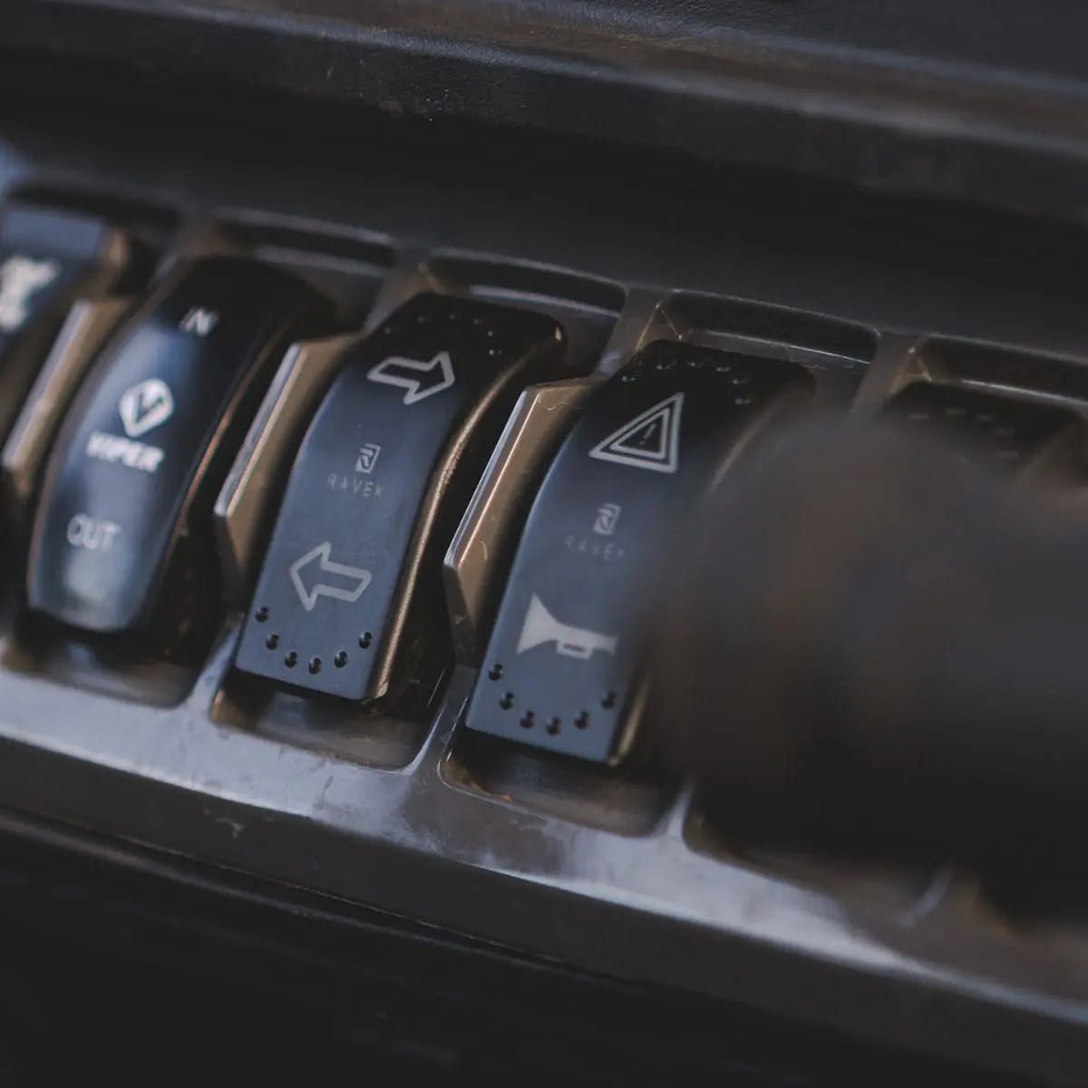 We include all items you need for a street legal kit, like a license plate holder and illuminator, and a horn. But we also give you LED indicator arrows for you dash on the RZR and custom, backlit “smart” rocker switches that engage and disengage with the turn signal or allow you to confidently engage the horn or hazard lights.