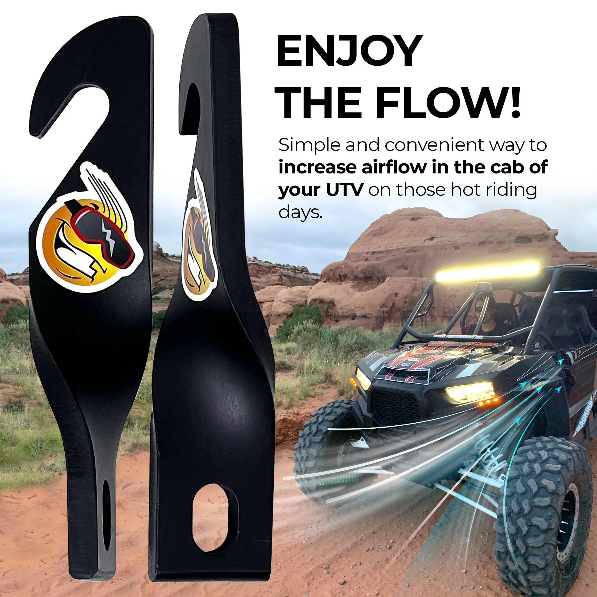 Keep Smiling’s Easy-Cool UTV RZR Vented Door Latches is a cost-effective, simple and convenient way to increase airflow in the cab of your UTV on those hot riding days.