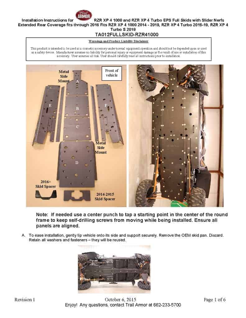 Trail Armor’s RZR XP 4 Skid Plates with Included Rock Sliders. Solid Full 1/2″ Thick UHMW These add Protection from the Mud, Rocks and More.