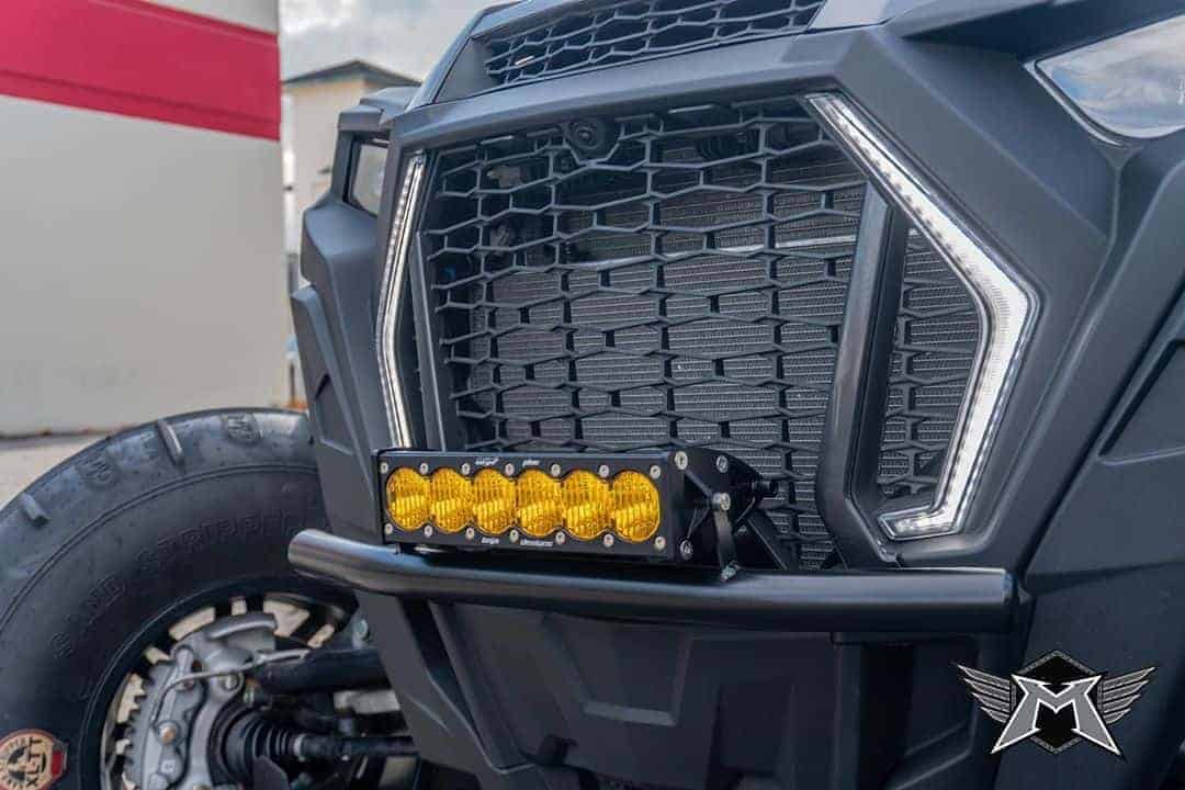 Our Polaris RZR XP Half Bumper, Half Edition Features a Minimalist Bar that Looks Clean and Holds 3 Light Pods To a 10″ LED light bar. Easy Mounting, Protection