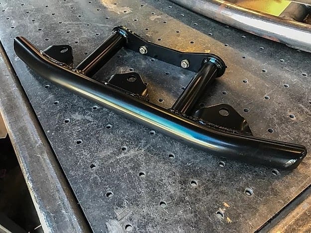 Our Steel Front Half Bumper features a minimalist bar that looks clean and holds 3 light pods to a 10″ LED light bar. (Light NOT Included)