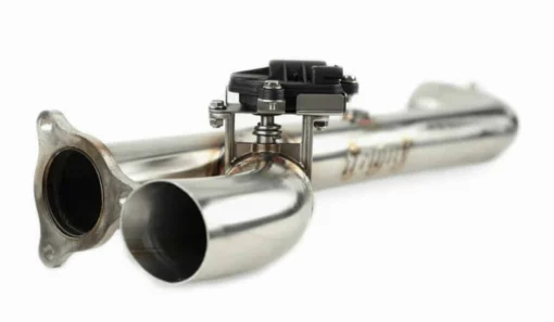 This RZR XP Turbo Head Pipe with Electronic Cutout Allows You With a Push of A Button To Bypass The Muffler and Directly Exit The Exhaust.