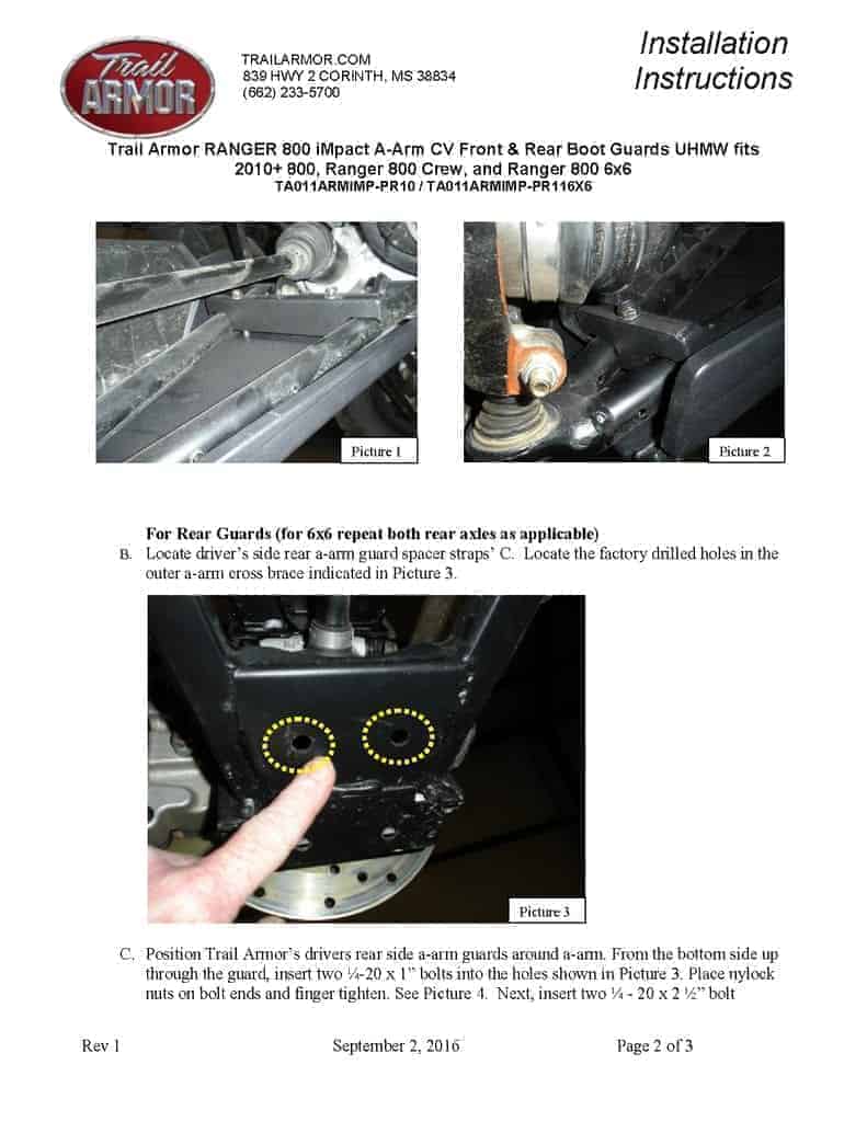 NOTE: The 6×6 a-arm guards are exactly the same as the Ranger 800 guards – just has 2 extra rear guards (not shown in picture).