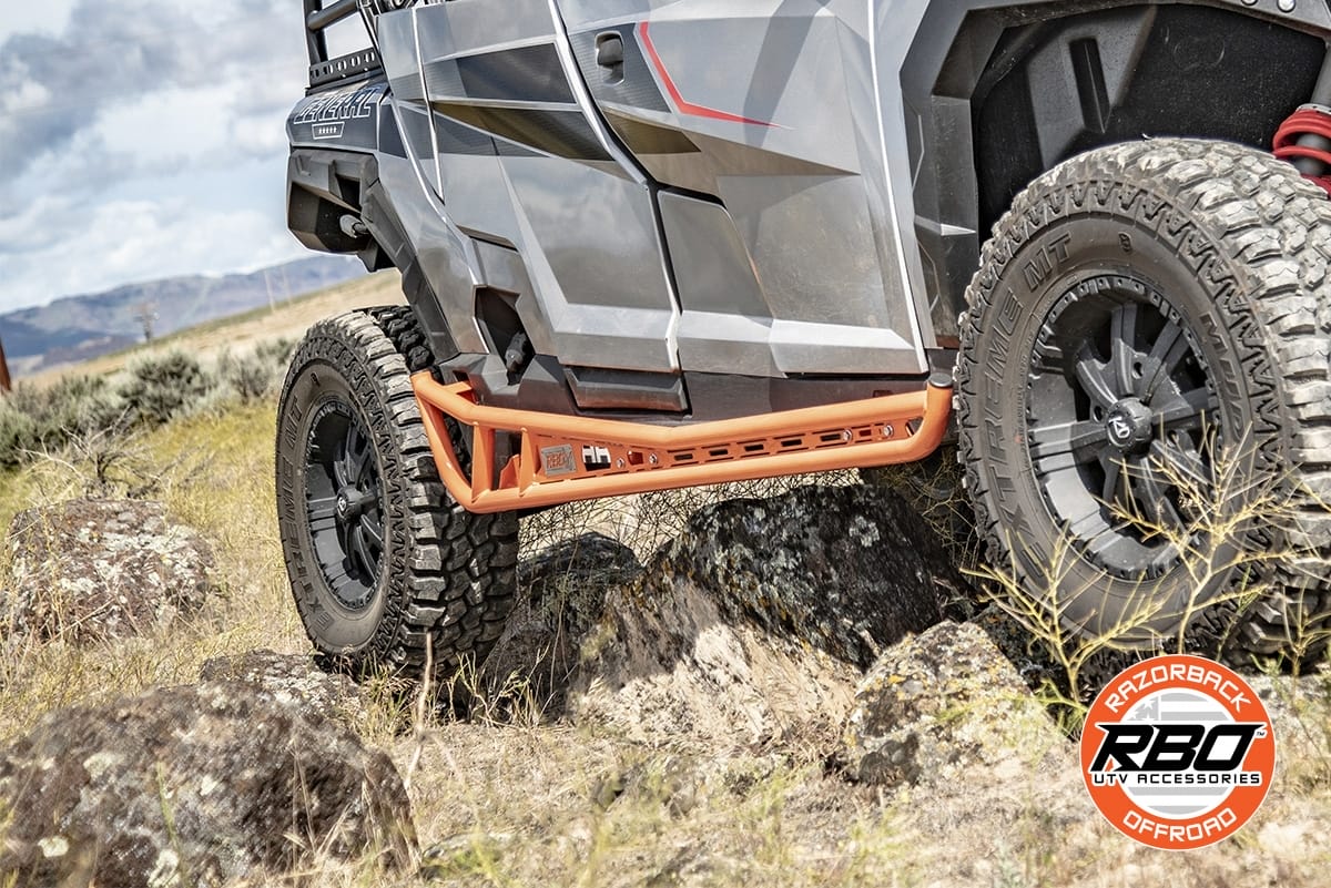 Looking For The Best Cab Protection, Solid Steel Polaris General Rock Sliders Protect Your Cab. These RZR XP Rock Sliders Cover Front To Back With High Grad Steel