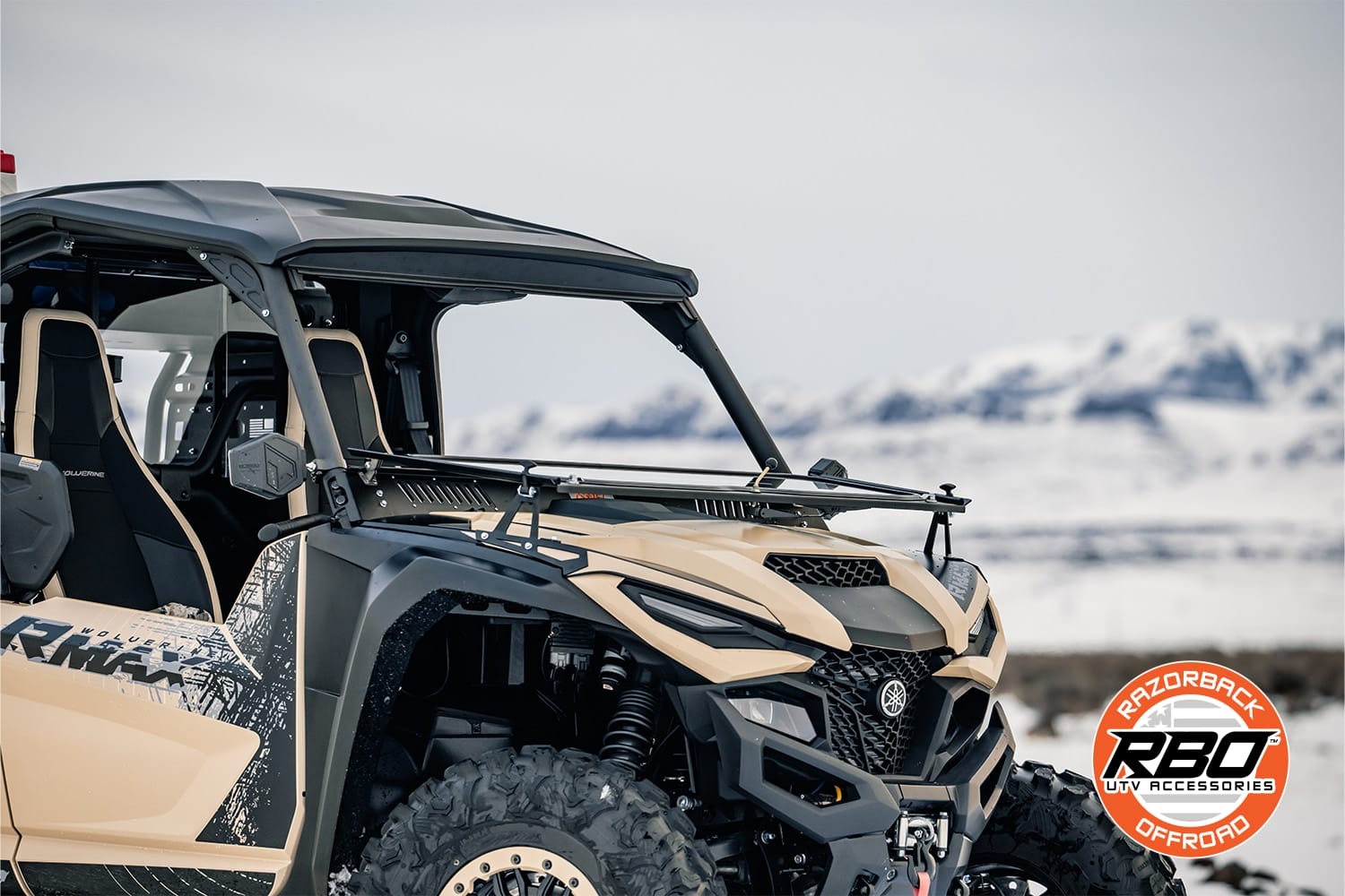 Additionally, RBO includes a reliable windshield wiper to keep your view clear during rainy or dusty conditions. It enhances visibility for a safer ride. Like our other windshields, those who use our Yamaha Wolverine Rmax folding windshield say it’s one of the best add-ons they install on their Side x Side.