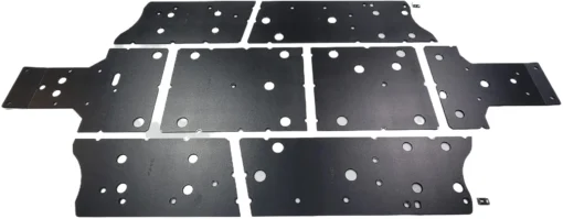 Trail Armor’s skid plates come in easy to install panels that cover the full length and breadth of the vehicle, including the front and rear differential. Access holes to service points and oil drains make maintenance a breeze. Strategically placed drain holes allow dirt and debris to wash out – you don’t have to remove them to clean out the belly your vehicle. However, if needed, individual panels may be removed to access different areas without removing the entire skid plate. Recessed mounting holes protect fasteners from damaging blows and keeping all bolt heads from protruding the skid’s surface.