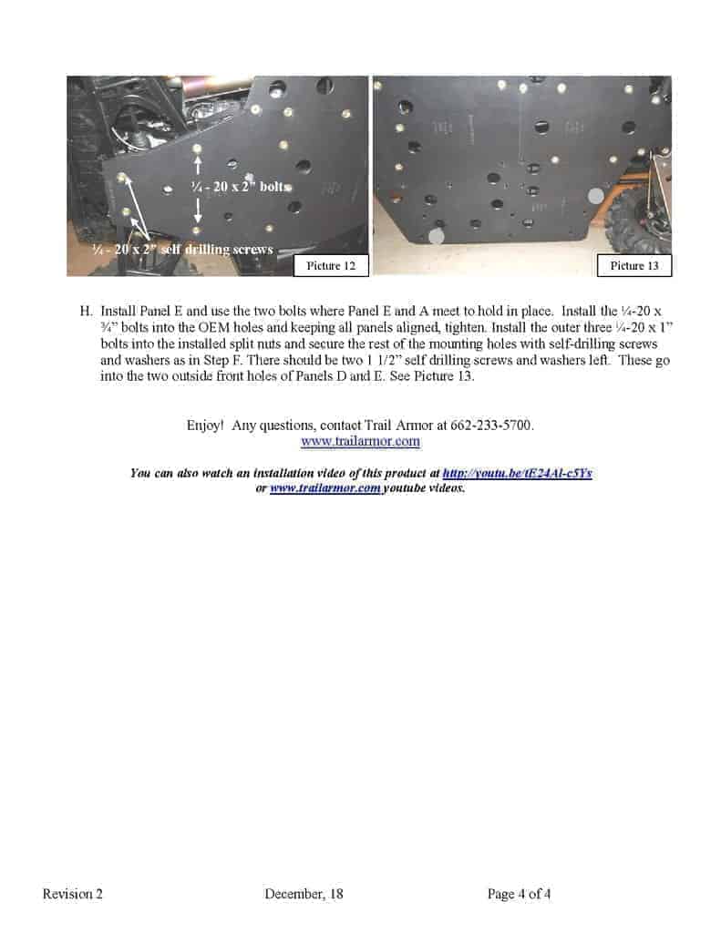 Trail Armor’s Ranger XP Full Skid Plates Along with Included Rock Sliders. These Add Protection From the Mud, Rocks and More. 1/2″ Thick UHMW Plastic Protection