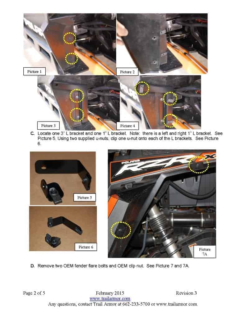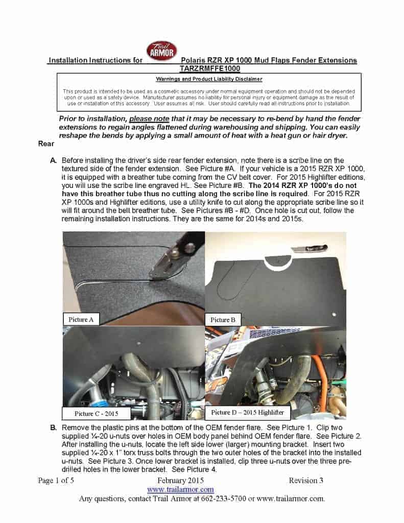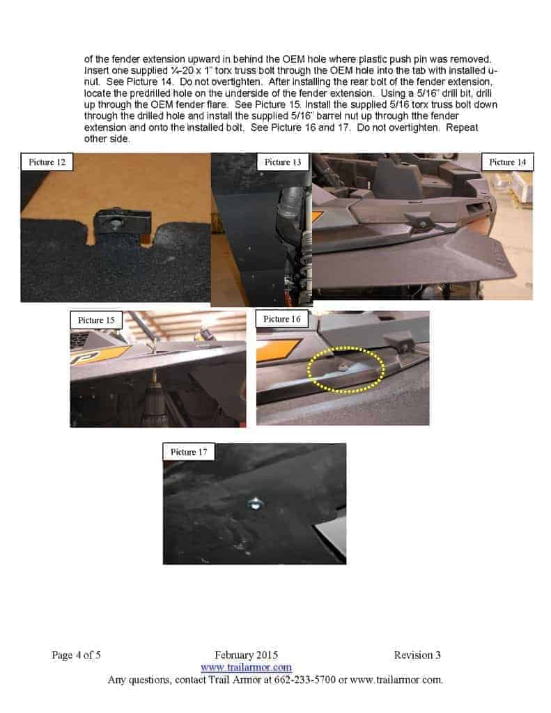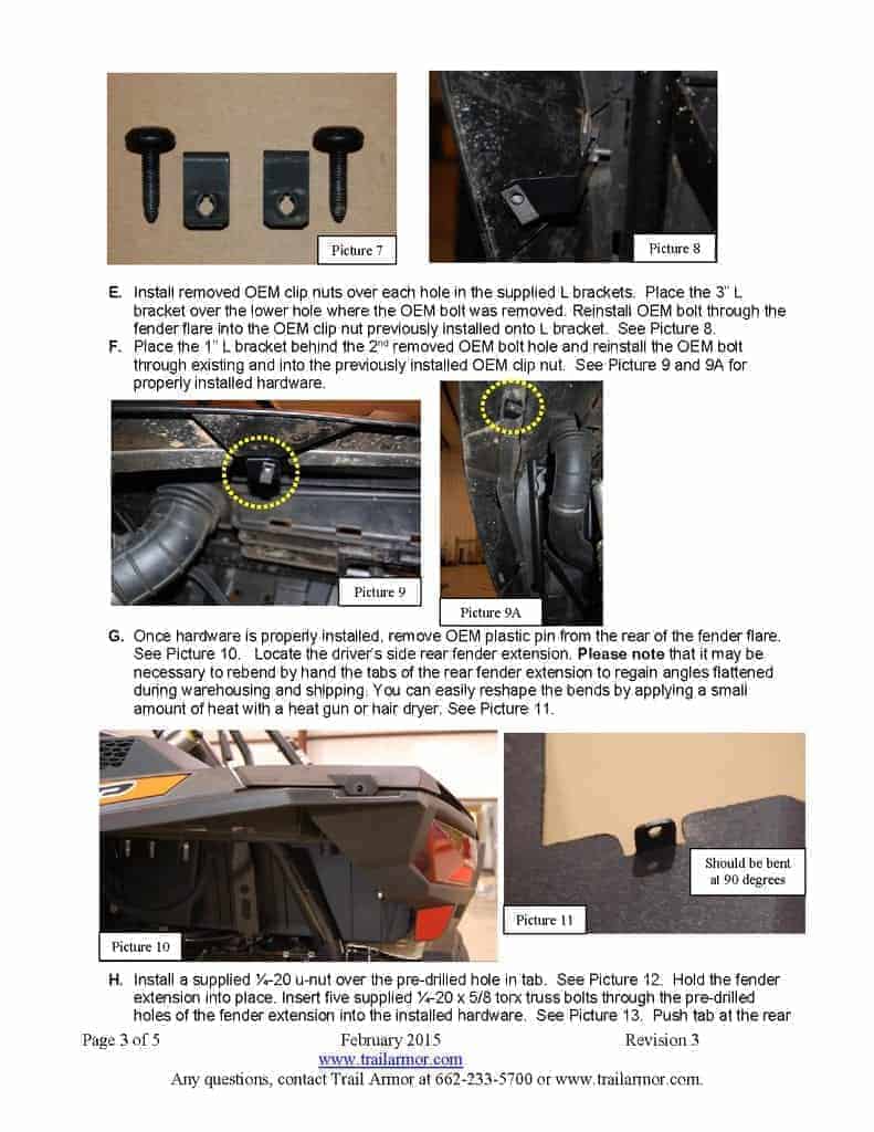 Kits for 2015+ models have a scribed cut out for the breather tube on the driver’s side rear mud flap fender extension.