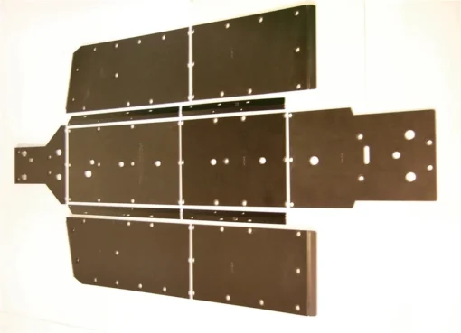 Made from 1/2″ uhmw (not 3/8), these plastic skids absorb shock to the bottom of the vehicle with no dents or rust and are lighter than traditional metal skids.