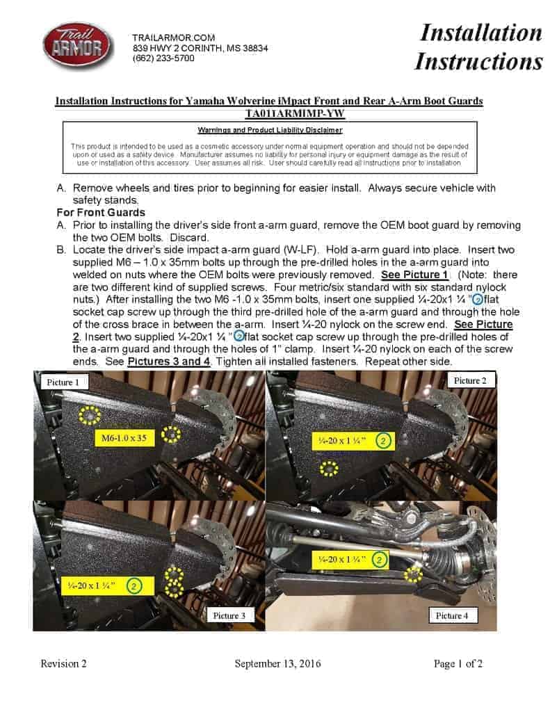 Fits 2016 – 2018 Yamaha Wolverine.