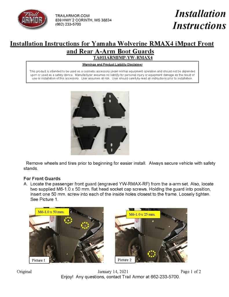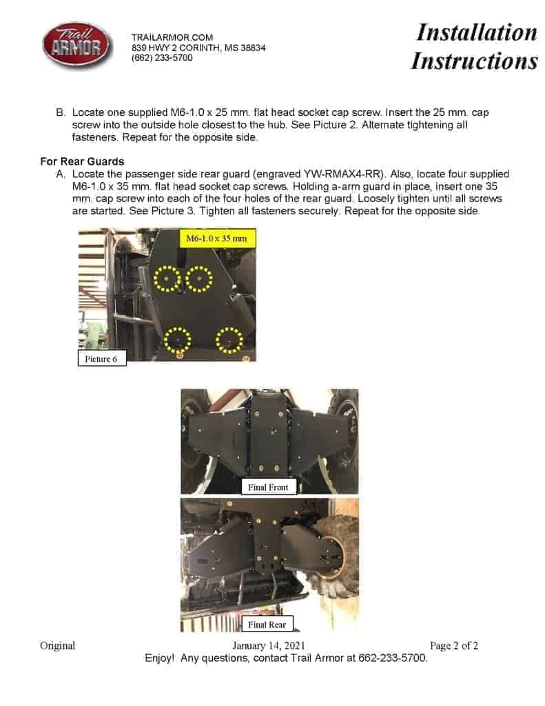 Trail Armor Brings there Protection Package, Yamaha RMAX4 Compact A Arm Guards Made Of 1/2″ UHMW That Help the Abuse of Rocks, Mud and So Much More of Your A Arms