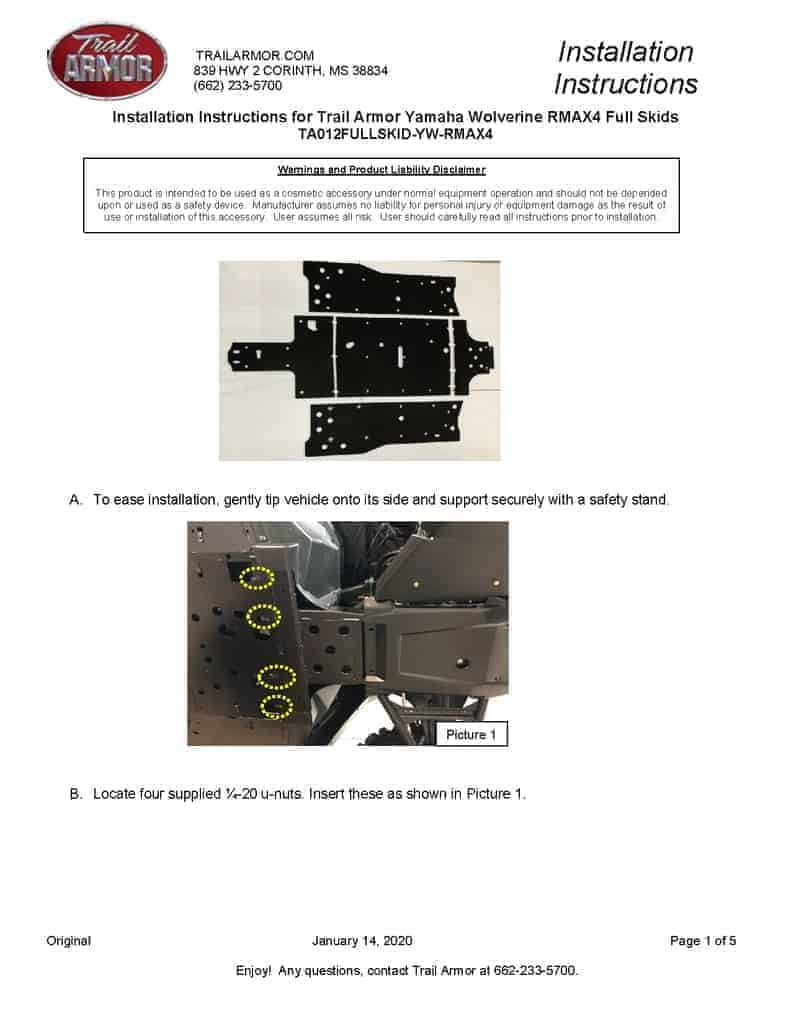 Get the best in under vehicle protection with Trail Armor’s full skid plate set for the Yamaha Wolverine Compact RMAX4, RMAX4 1000 X-TR, RMAX4 1000 LT Edition.