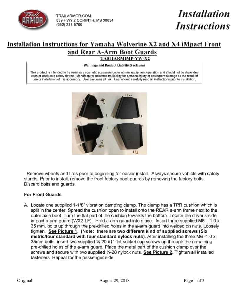 For 1000 Models Please See – Wolverine X2 1000 A Arm Guards